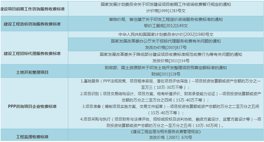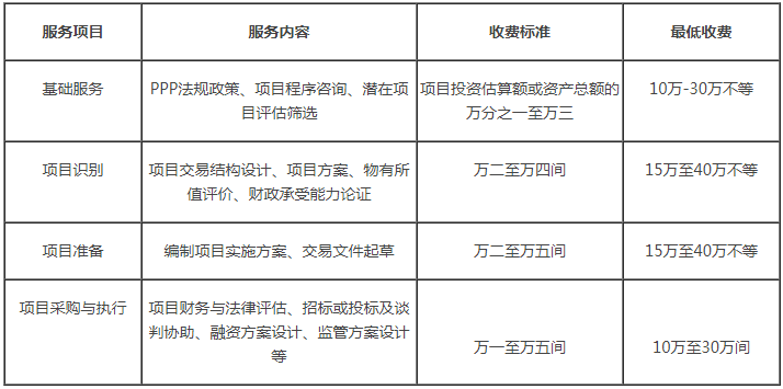 PPP咨詢項目企業收費標準