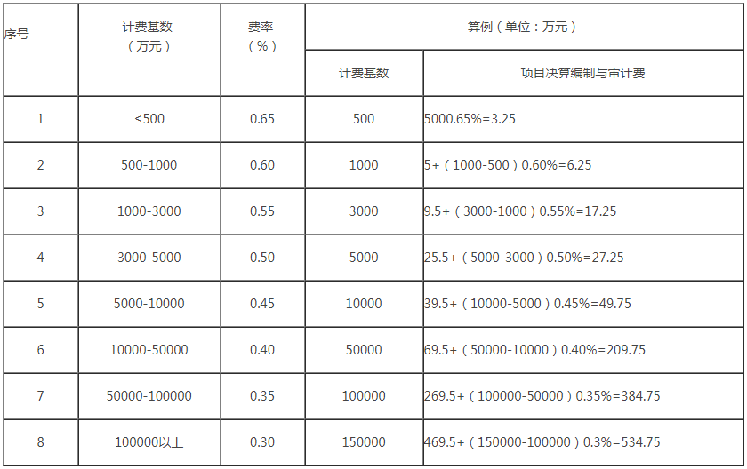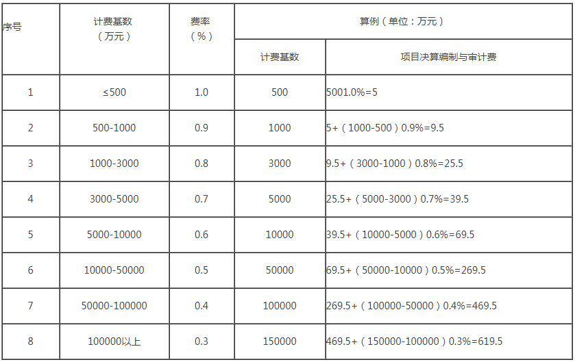 以工程施工費與設備購置費之和最為計費基數,采用差額定率累進法計算。