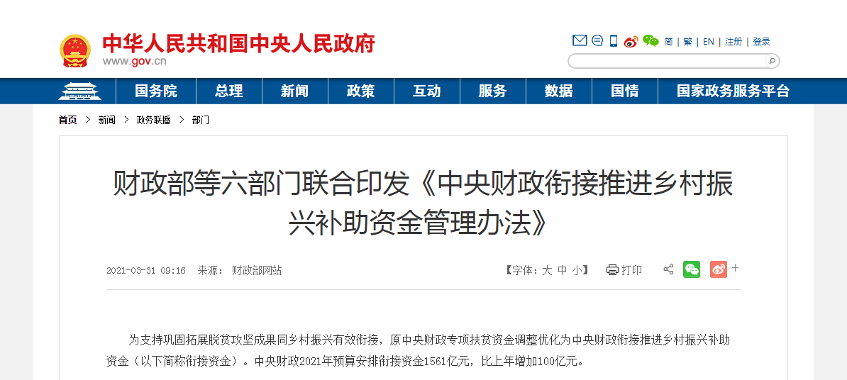 1561億元鄉(xiāng)村振興補(bǔ)助資金怎么安排?管理辦法來了