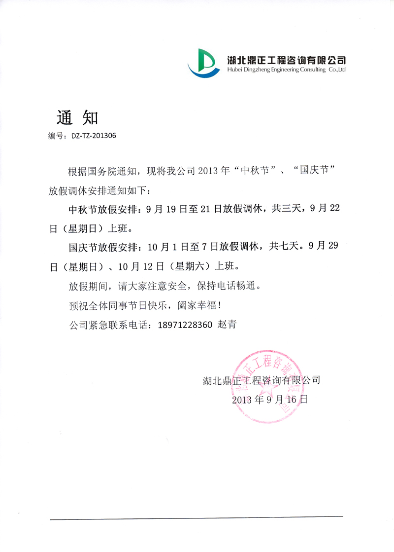 2013年“中秋國慶節(jié)”放假通知