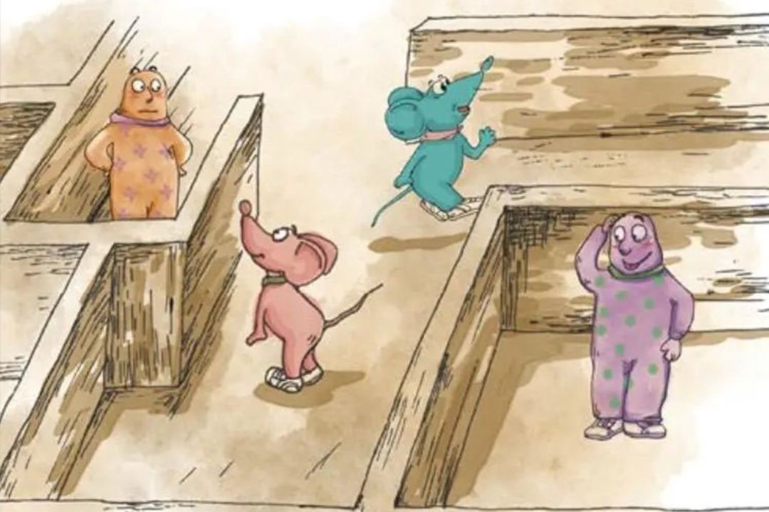 ▲奶酪不見了,小老鼠隨變化而動小矮人卻不愿意接受現(xiàn)實