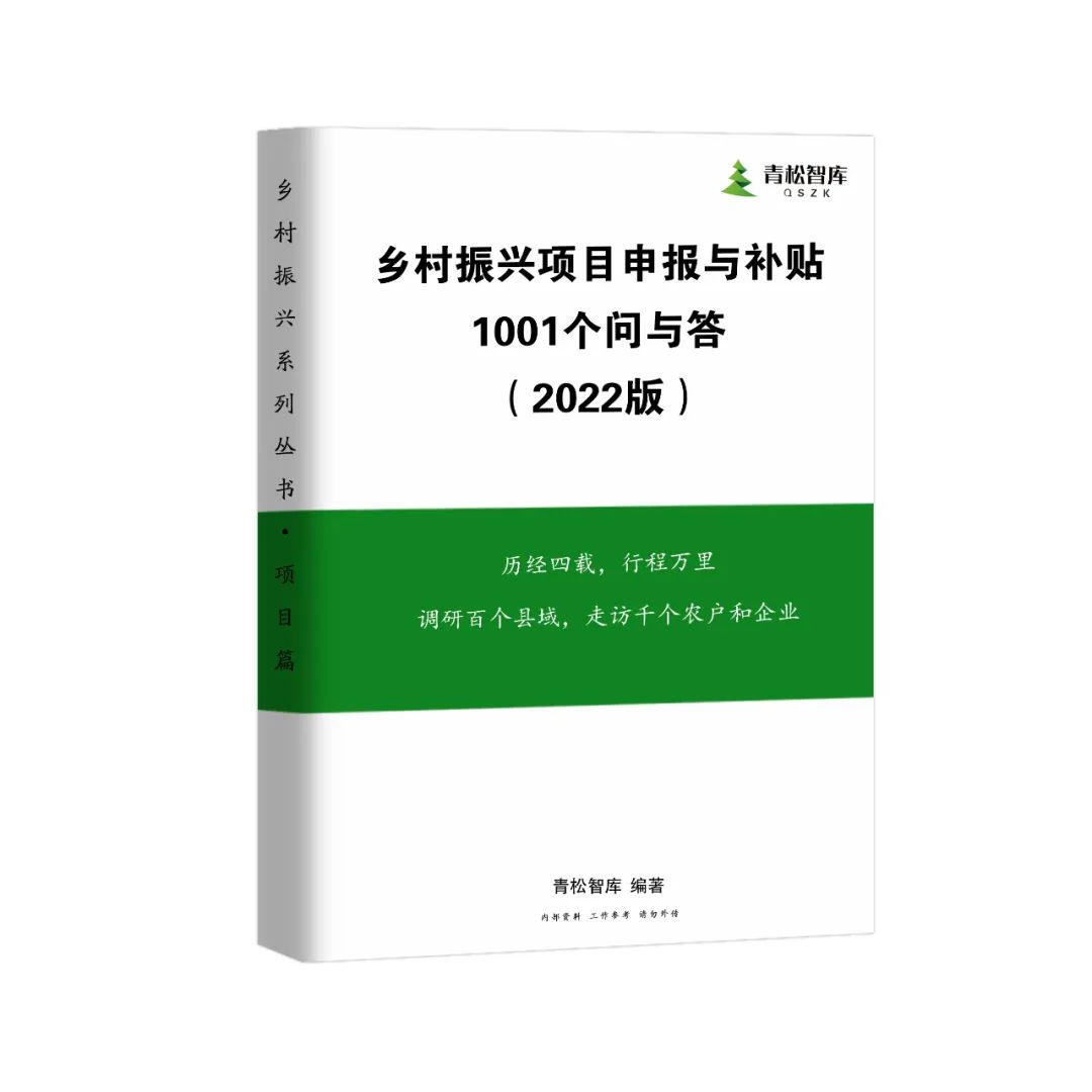 歷經(jīng)四載,行程萬里,調(diào)研百個縣域,走訪千家農(nóng)戶(或企業(yè)),凝聚匠心,由青松智庫編制的《鄉(xiāng)村振興項目申報與補(bǔ)貼1001個問與答》內(nèi)部資料,數(shù)量有限,是常用工作參考工具書,有需要的請加緊與青松智庫聯(lián)系。