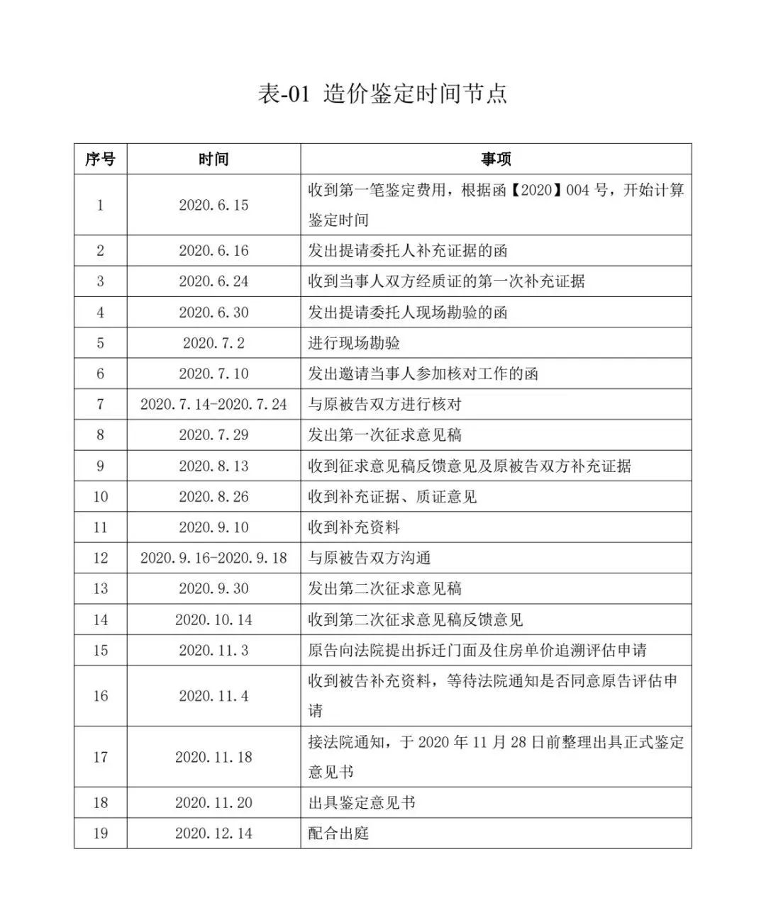 案例項目的造價鑒定中,時間節(jié)點詳表-01。