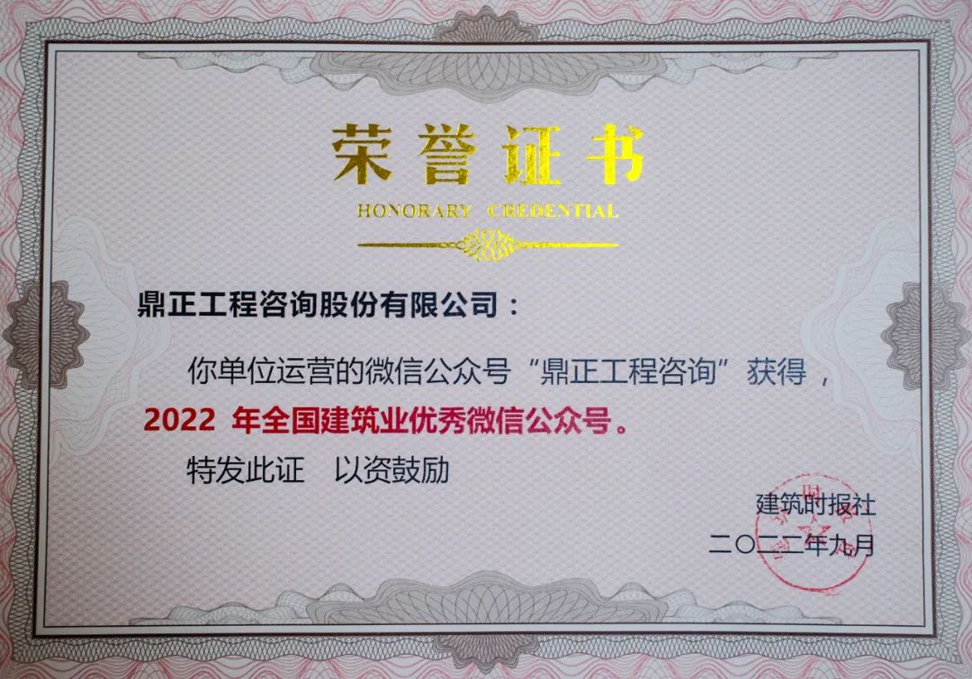 9月25-26日,由建筑時(shí)報(bào)社主辦的2022建筑業(yè)微信公眾號運(yùn)維經(jīng)驗(yàn)交流研討會(huì)暨全國建筑業(yè)優(yōu)秀公眾號頒獎(jiǎng)典禮在武漢舉辦。鼎正官方微信公眾號“鼎正工程咨詢”上榜全國建筑業(yè)優(yōu)秀微信公眾號榜單,榮獲2022年全國建筑業(yè)優(yōu)秀微信公眾號。