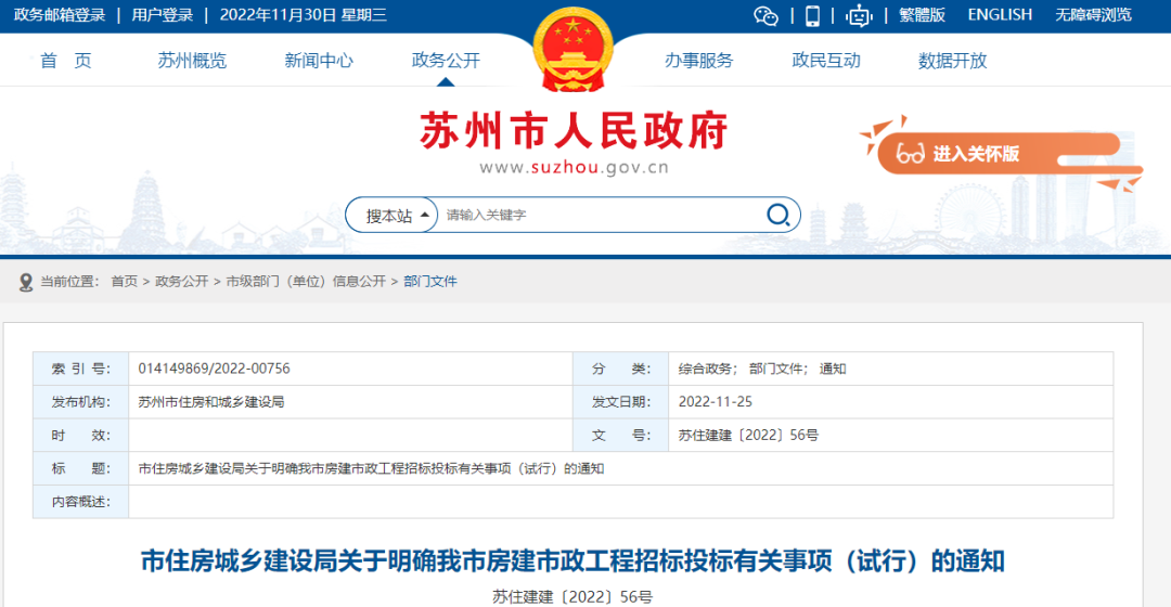 近日,蘇州市住房城鄉建設局發布關于明確我市房建市政工程招標投標有關事項(試行)的通知,一是明確“評定分離”確定中標人的程序,招標人應在招標前,將確定“評定分離”方案作為“三重一大”事項進行集體研究。采用“評定分離”確定中標人的招標項目,評標辦法、定標因素、定標方案及要求投標人提供的材料應當在發布招標公告時同時發布。二是明確資格預審項目招標人選擇投標人相關事項,評選因素應具體、明確、體現競爭性,不得含有地方保護、市場分割、指定交易等妨礙統一市場和公平競爭的內容。三是加強招投標的核查、通報、監督,招投標活動中投標人擬派項目管理團隊人員配備情況將列入蘇州市建筑業企業投標行為及標后履約考評內容,每季度予以公布。