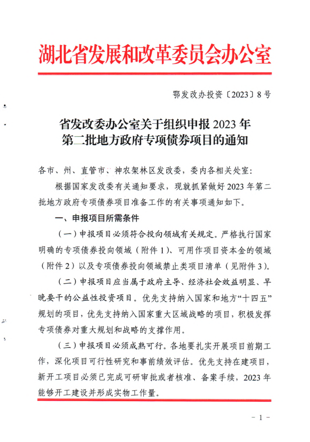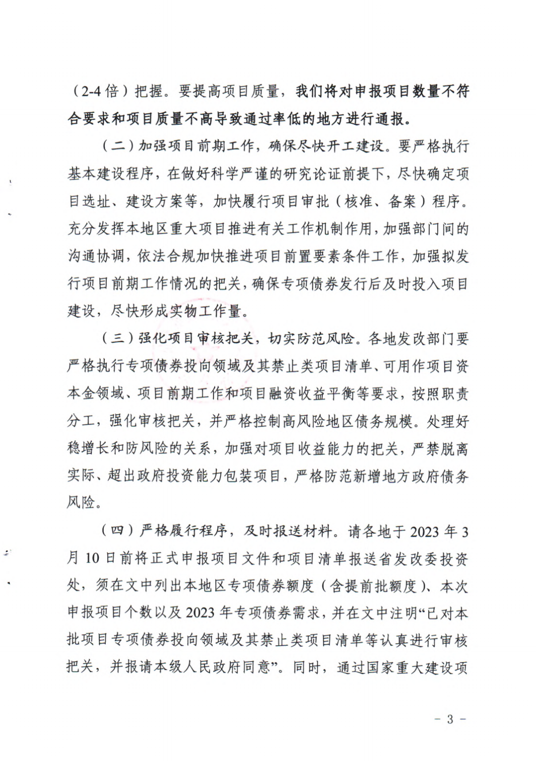 2023 年 3月 10日前將正式申報項目文件和項目清單報送省發改委投資處。