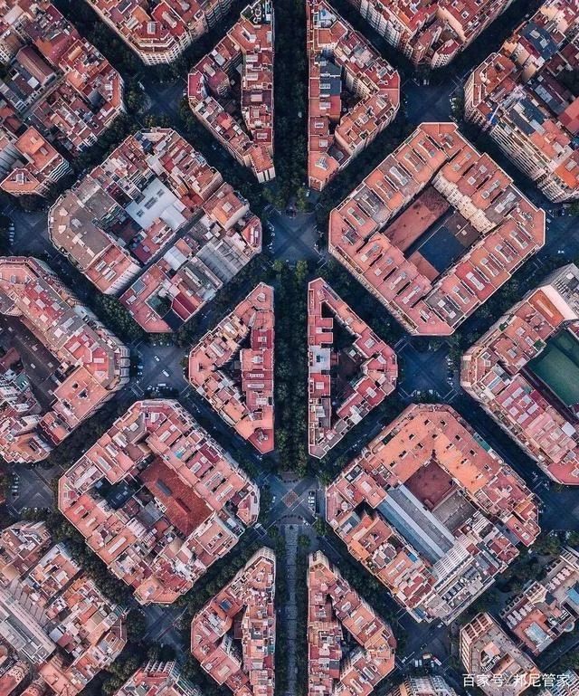 他甚至還規(guī)劃幾個街區(qū)構成一個單元,來共享一所學校、醫(yī)院、市場等公共設施,塞爾達近200年前的超前設計,為這座城市賦予了血肉,也奠定了巴塞羅那城建的基礎。城市的樓房排列整齊,高度一致。道路像棋盤一樣,宅樓高不超過六層樓。