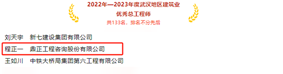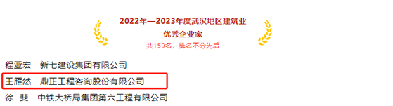11月21日,武漢建筑業(yè)協(xié)會(huì)正式公布“2023年度武漢市最具成長性民營建筑企業(yè)”、“2022-2023年度武漢地區(qū)建筑業(yè)優(yōu)秀企業(yè)、優(yōu)秀企業(yè)家、優(yōu)秀總工程師、優(yōu)秀項(xiàng)目經(jīng)理”兩項(xiàng)評(píng)選結(jié)果,鼎正連續(xù)上榜,斬獲多項(xiàng)行業(yè)榮譽(yù)!
