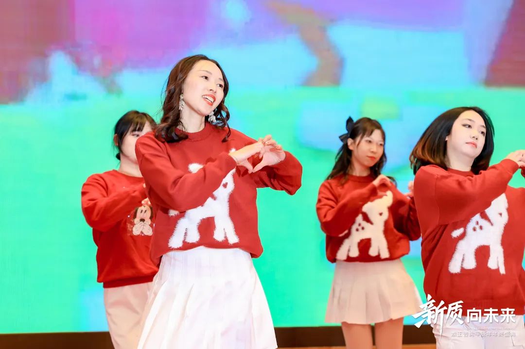 另一邊,由信息部、投標(biāo)部、城市公司發(fā)展部、市場部、財(cái)務(wù)部及造價(jià)咨詢事業(yè)部臨時(shí)組建的女團(tuán),帶來了洋溢著青春活力的舞蹈串燒《愛你》+《桃花朵朵開》,展現(xiàn)了別樣的風(fēng)采。