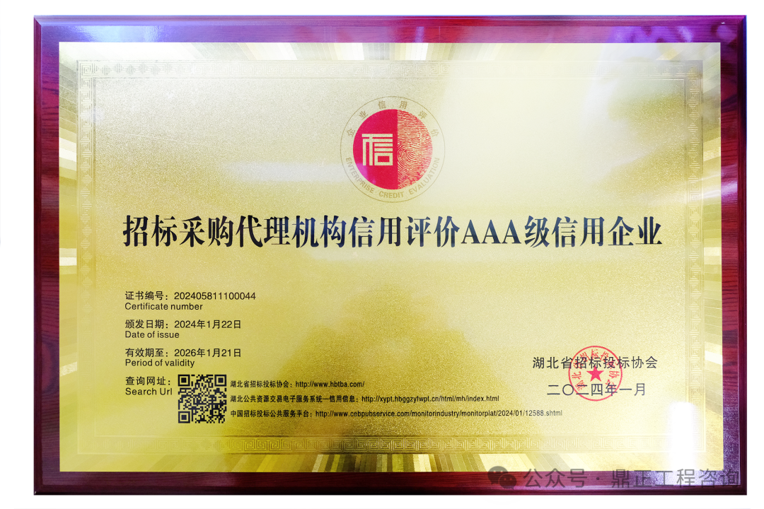 近日,中國工程咨詢協(xié)會發(fā)布了2024年度工程咨詢單位信用評價公告,鼎正憑借優(yōu)異的誠信建設(shè)和信用管理能力,榮獲“AAA級信用等級”評價。