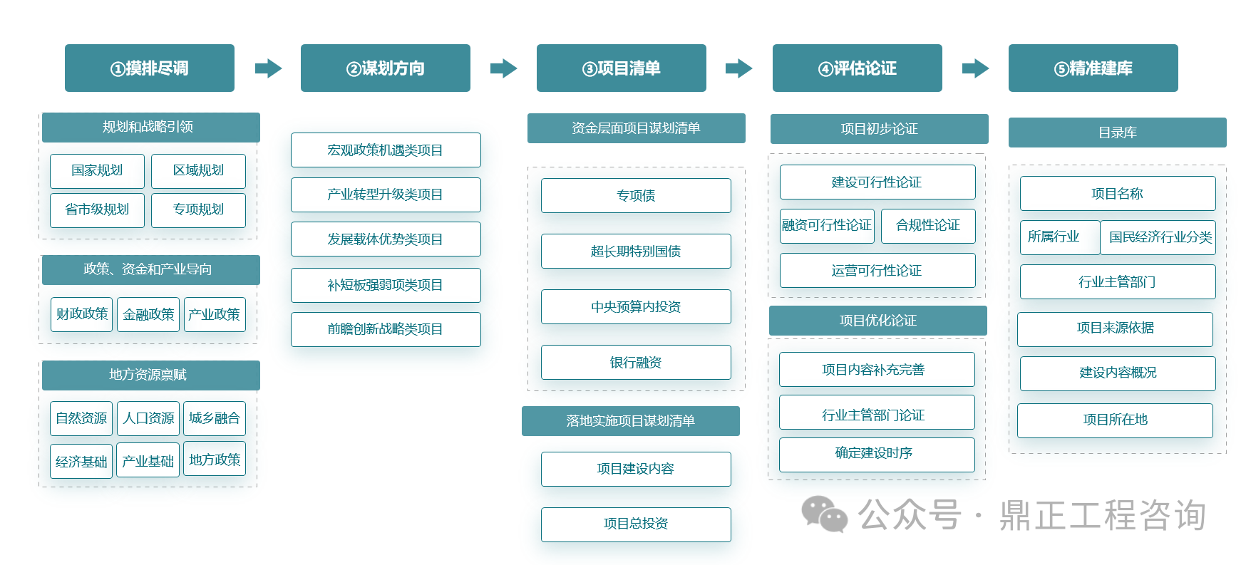 項目謀劃一般可圍繞以下五個方向:宏觀政策機遇類項目、產業轉型升級類項目、發展載體優勢類項目、補短板強弱項類項目、前瞻創新戰略類項目。結合前面梳理的規劃與政策,以及當地基礎條件,形成本地項目謀劃方向。