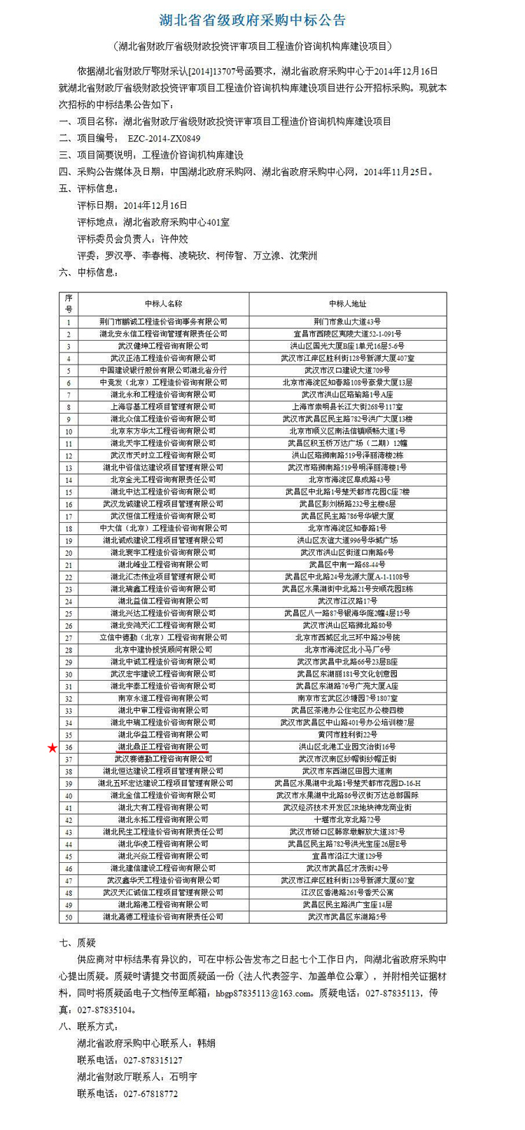 【經(jīng)營成果】我司入選湖北省財政廳省級財政投資評審項目工程造價咨詢機構(gòu)庫
