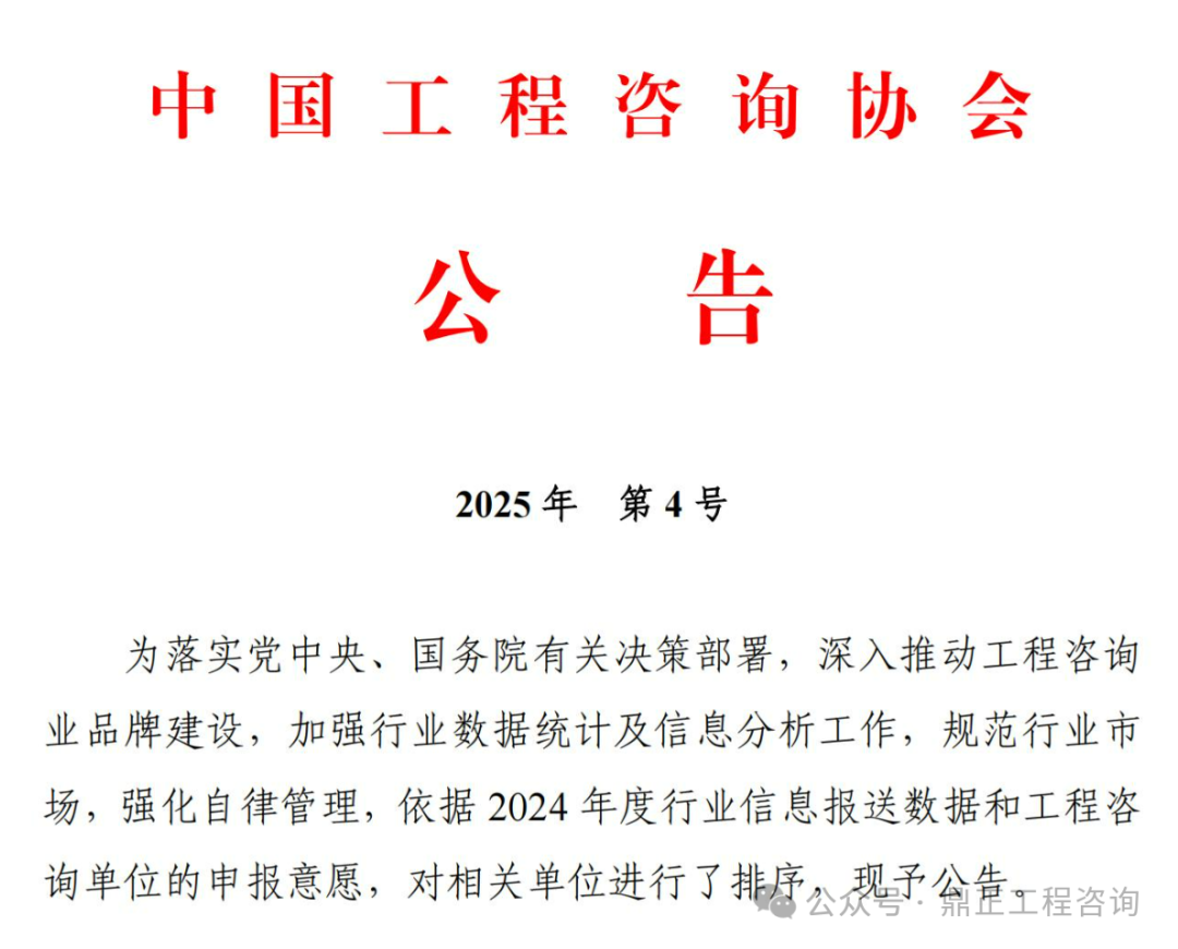 為進(jìn)一步推動工程咨詢行業(yè)品牌建設(shè),規(guī)范行業(yè)行為、提高自律管理,8月21日,中國工程咨詢協(xié)會在官網(wǎng)發(fā)布了關(guān)于2024年度工程咨詢單位排序的公告。鼎正憑借穩(wěn)健的經(jīng)營實力和綜合表現(xiàn),同時榮登兩項百強榜單,位列“2024工程咨詢單位營業(yè)收入中型企業(yè)100強”第57位,以及“2024工程咨詢單位民營企業(yè)營業(yè)收入100強”第71位!