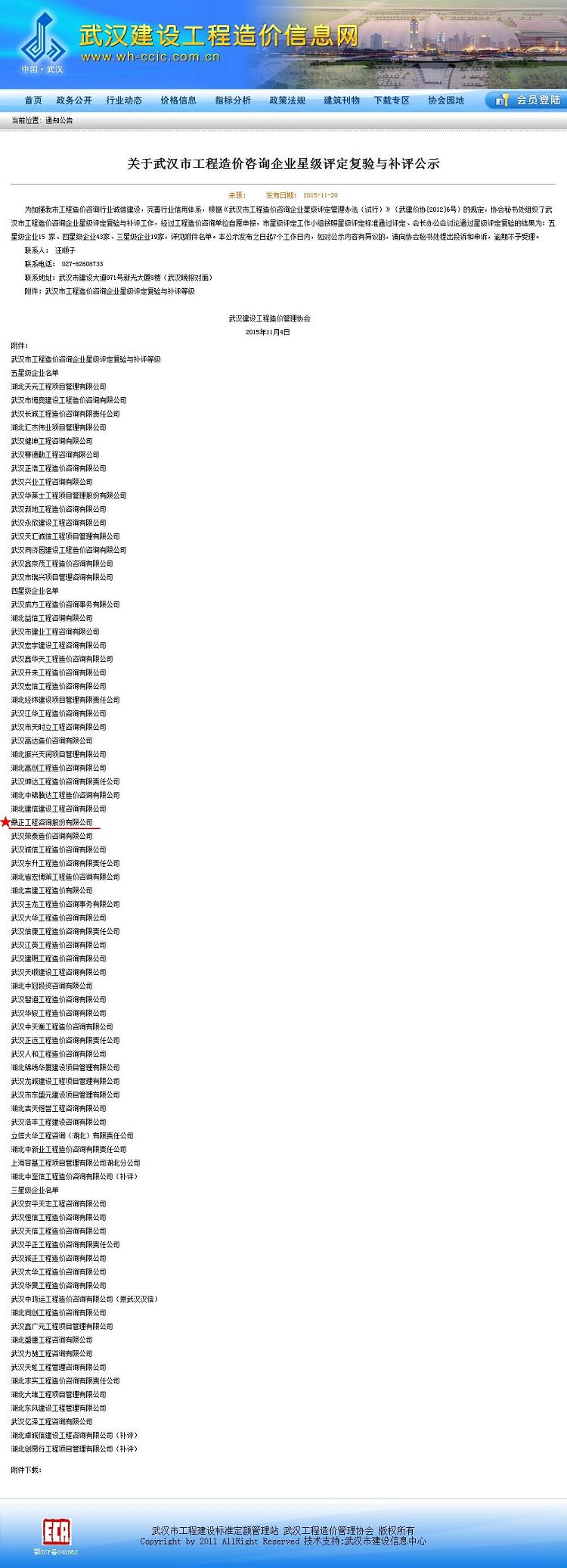 我司獲武漢市工程造價咨詢企業星級評定四星級企業稱號