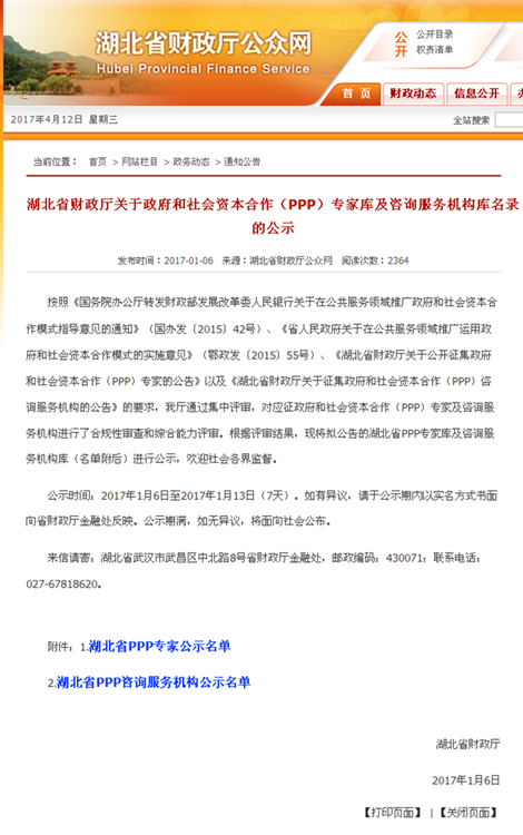 我司入選湖北省財(cái)政廳PPP咨詢服務(wù)機(jī)構(gòu)庫,同時3位同事入選湖北PPP專家?guī)?/span>