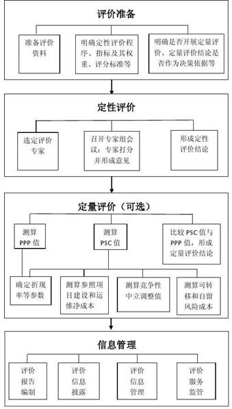 (二)評價方法。主要包括定性評價程序、指標及權重、評分標準、評分結果、專家組意見以及定量評價的PSC值、PPP值的測算依據、測算過程和結果等。