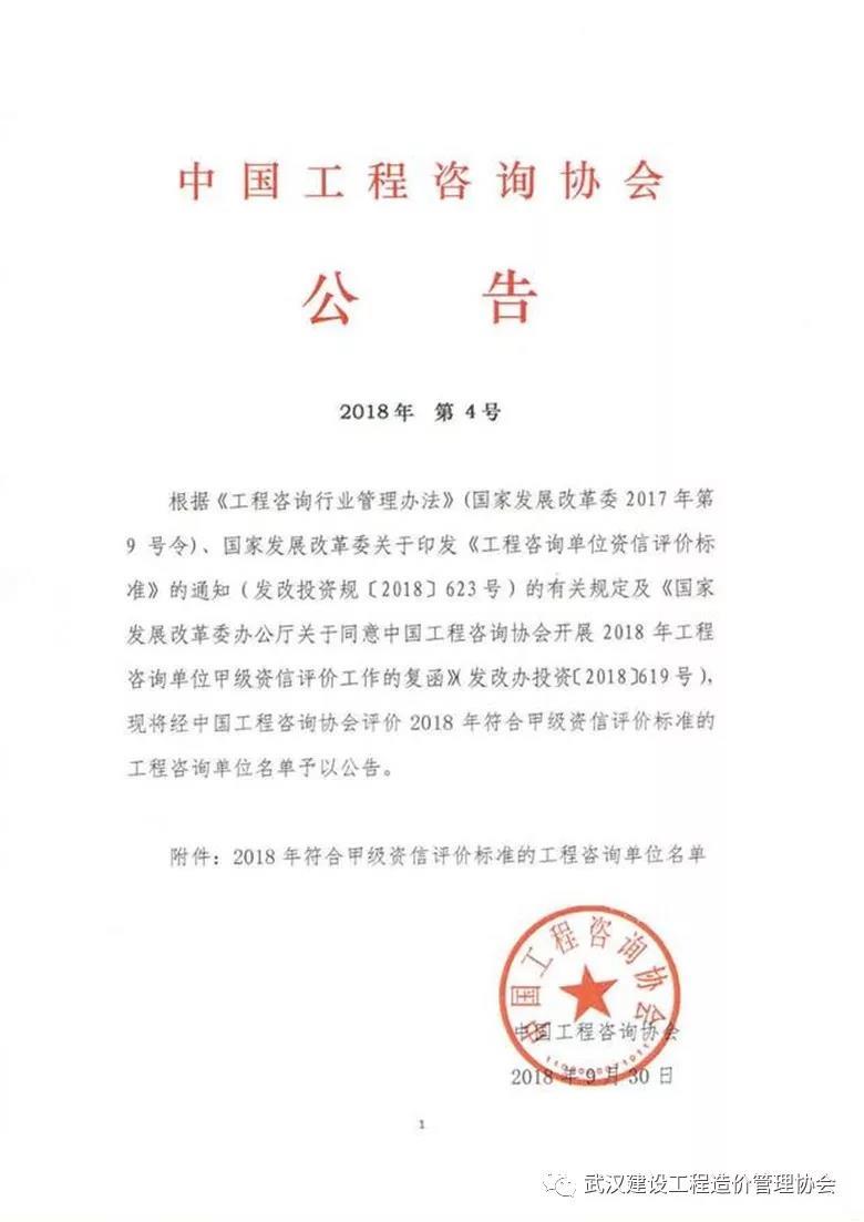 2018年9月19日,中國建設(shè)工程造價管理協(xié)會發(fā)布了“2018年度全國工程造價咨詢企業(yè)信用評價結(jié)果”,此次湖北省僅有22家工程造價咨詢單位獲得AAA信用評級,我司從全國眾多參評單位中脫穎而出,獲此榮譽(yù)。